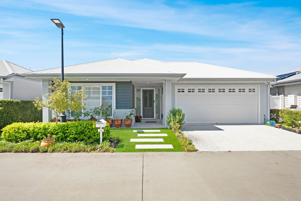 The Brightwater is set in a sought-after over-50s lifestyle resort, offering 3 bedrooms (main with WIR & ensuite), guest bathroom, double garage, ducted air, and Smeg appliances. The open-plan layout is light-filled with a Hamptons-inspired design. The gourmet kitchen features soft-close drawers and spacious benches, flowing into a relaxed living area and seamless outdoor space. Enjoy a private, treelined backyard with no rear neighbours, low-maintenance gardens, and a pet-friendly fenced yard. The double garage includes epoxy flooring and backyard access. Resort amenities include clubhouses, pools, golf course, beach house, gym, and vibrant social events.