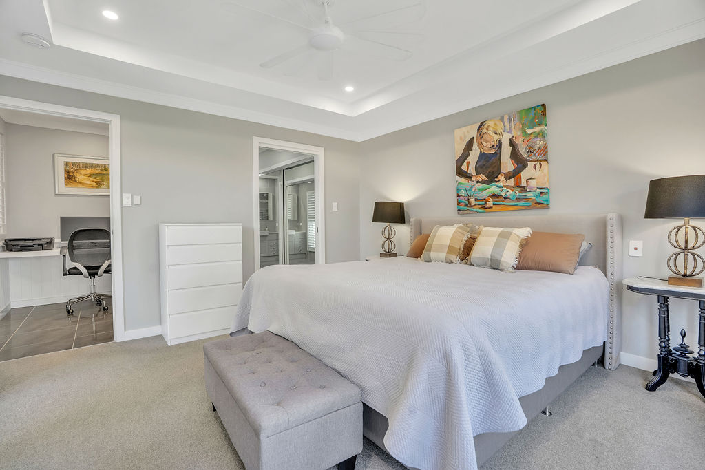 This beautifully appointed home offers three bedrooms, two bathrooms and a double garage, with ducted air conditioning throughout. The light-filled open plan design centres around a gourmet kitchen featuring Smeg appliances, 2 pac cabinetry and 40mm stone benchtops, flowing seamlessly to the spacious living area and covered alfresco with plantation shutters. Homeowners enjoy two clubhouses, golf course, beach house, pools, fitness centre and vibrant social activities. Don’t miss your chance to view.