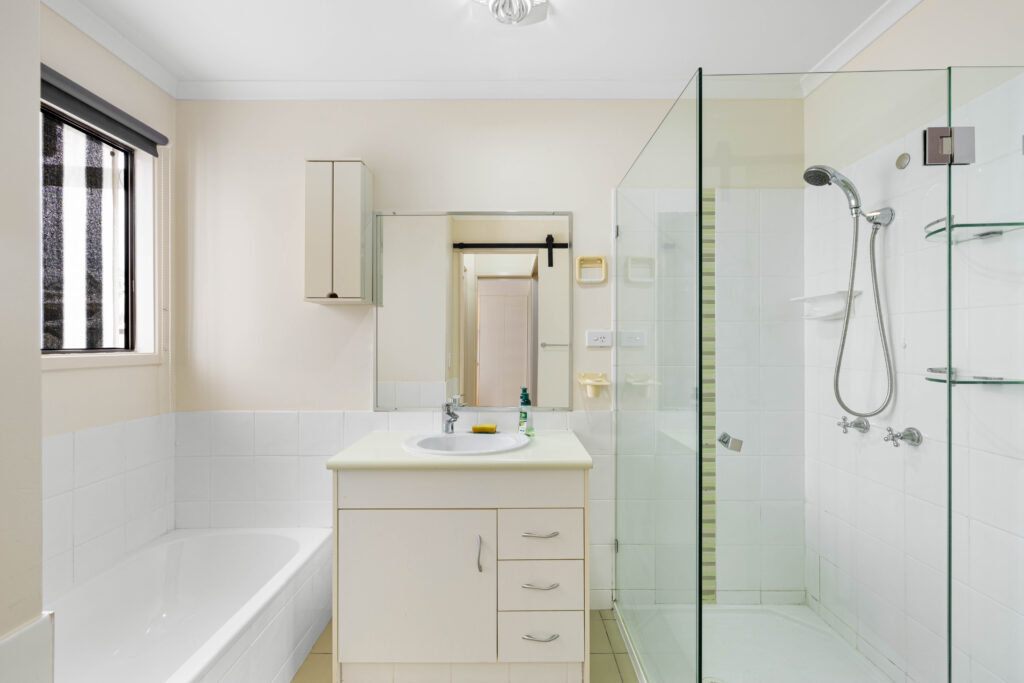 Perfectly positioned near the clubhouse and outdoor saltwater pool, this tidy two-bedroom, one-bathroom home offers easy, lowmaintenance living. High raked ceilings create a wonderful sense of space across the lounge and dining area, complemented by fresh paint and timber floors. The kitchen enjoys its own dedicated zone with wall oven, cooktop and a double sink overlooking the rear yard.