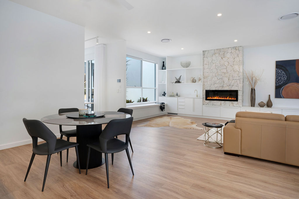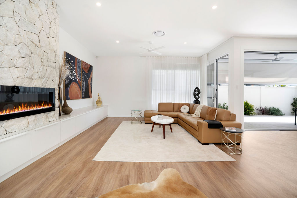 The Ivey is a Palm Springs–inspired, over-50s luxury home on the Sunshine Coast, blending bold design, premium finishes, and lightfilled open spaces. Features like a gourmet kitchen, private elevator, butler’s pantry, and golf-buggy garage make everyday living and entertaining effortless.