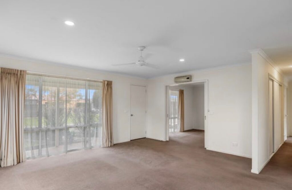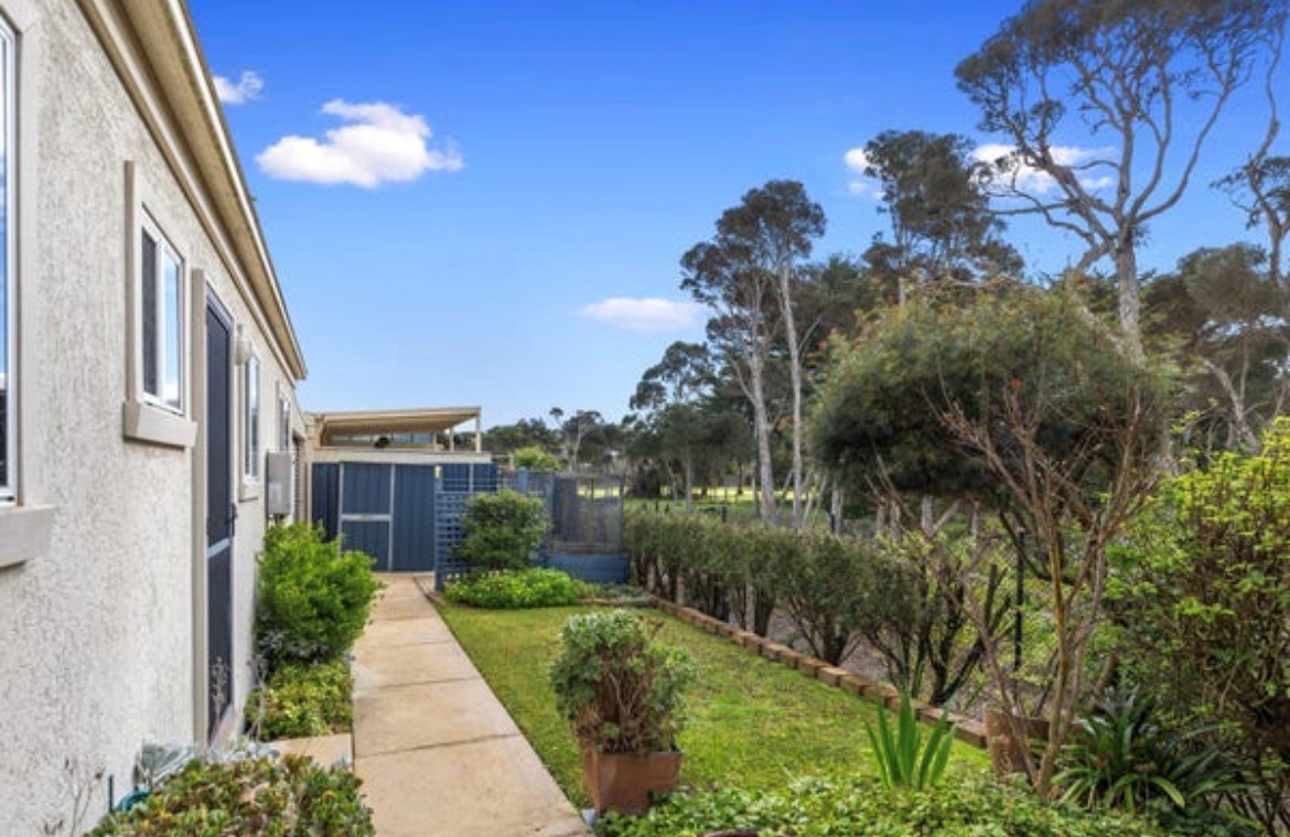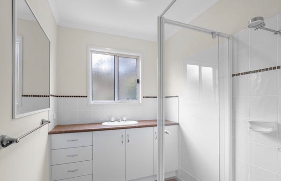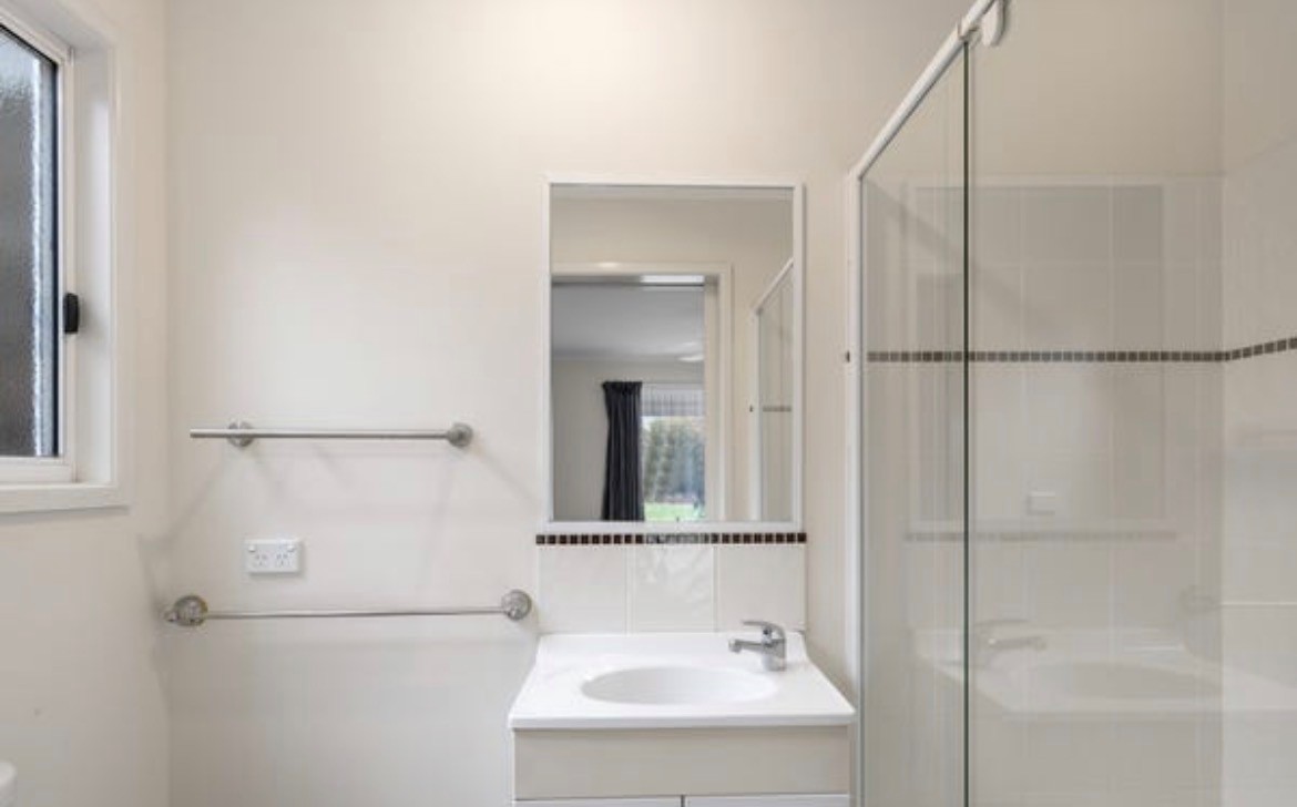 Inside, the home features two bedrooms with built-in robes, including a main bedroom with ensuite, plus a second bathroom and separate toilet for added convenience. A versatile third bedroom with double sliding doors to the lounge can easily serve as a study or additional living space.