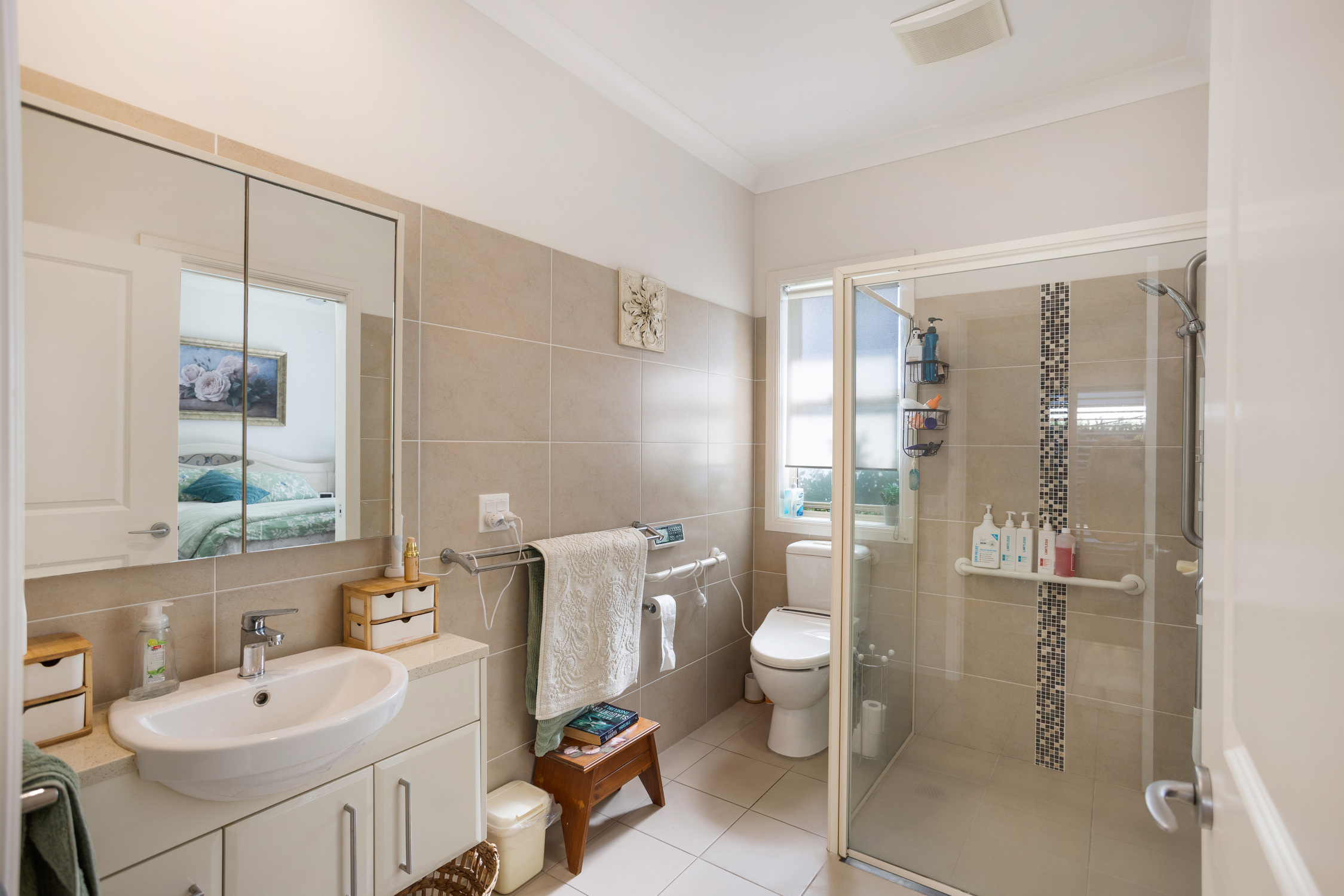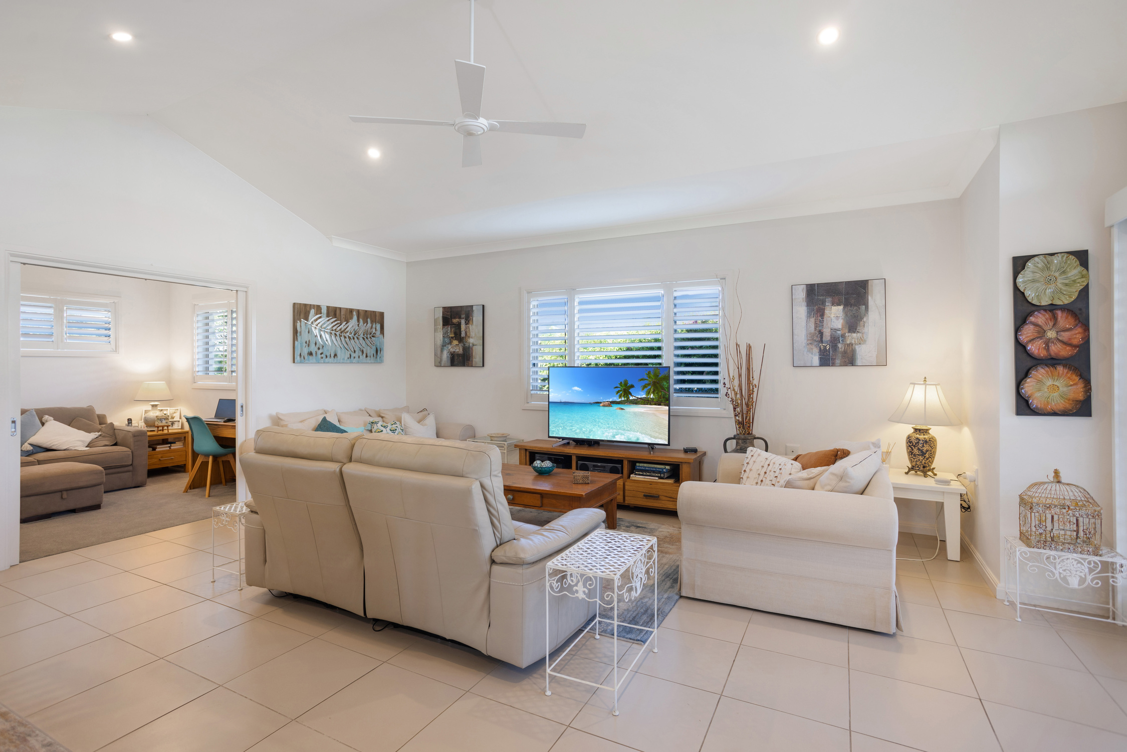 Presented in pristine condition, the home features a masterfully designed floor plan with an open plan kitchen and living area, ideal for entertaining. A separate wing offers two bedrooms, along with a bathroom and ensuite, providing excellent privacy and flexibility.