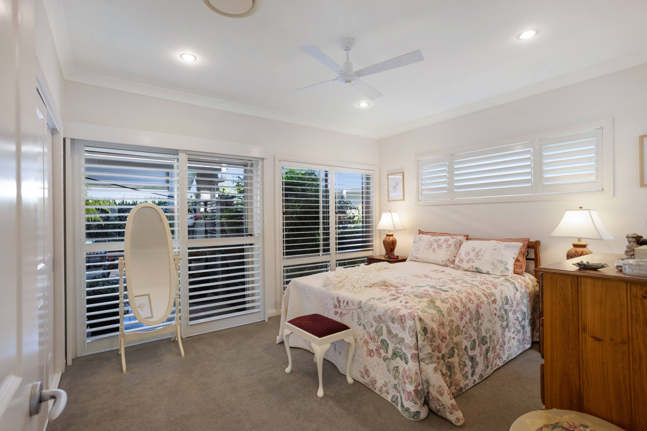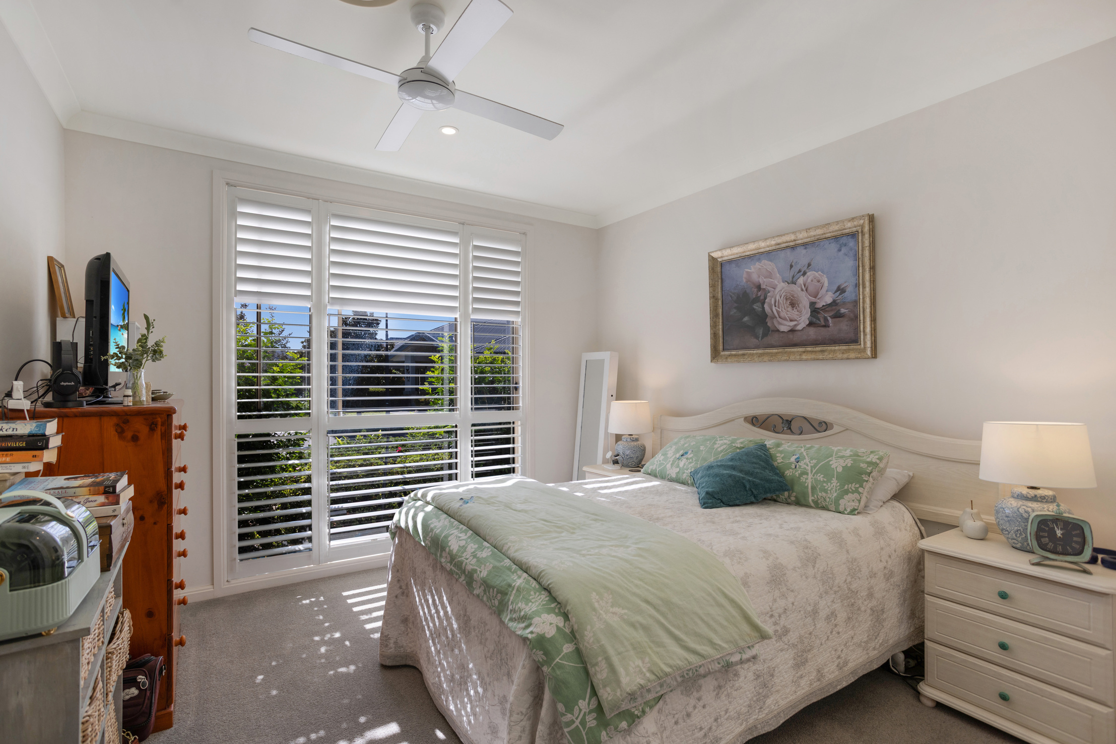 Both the living area and master bedroom open to a fully fenced private courtyard, complemented by a beautiful north-facing alfresco area and mature, well-maintained gardens. Plantation shutters throughout and solar power complete the offering.