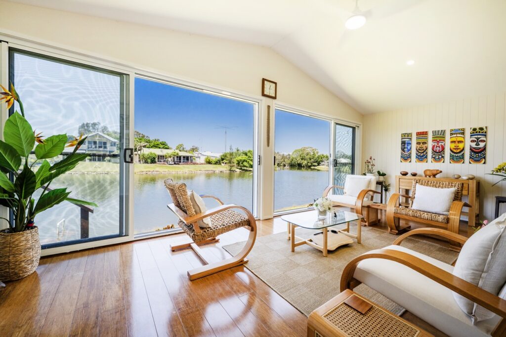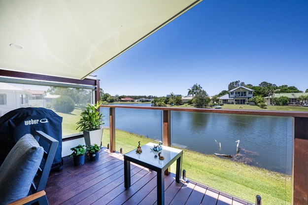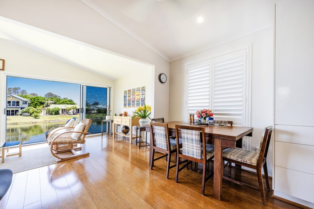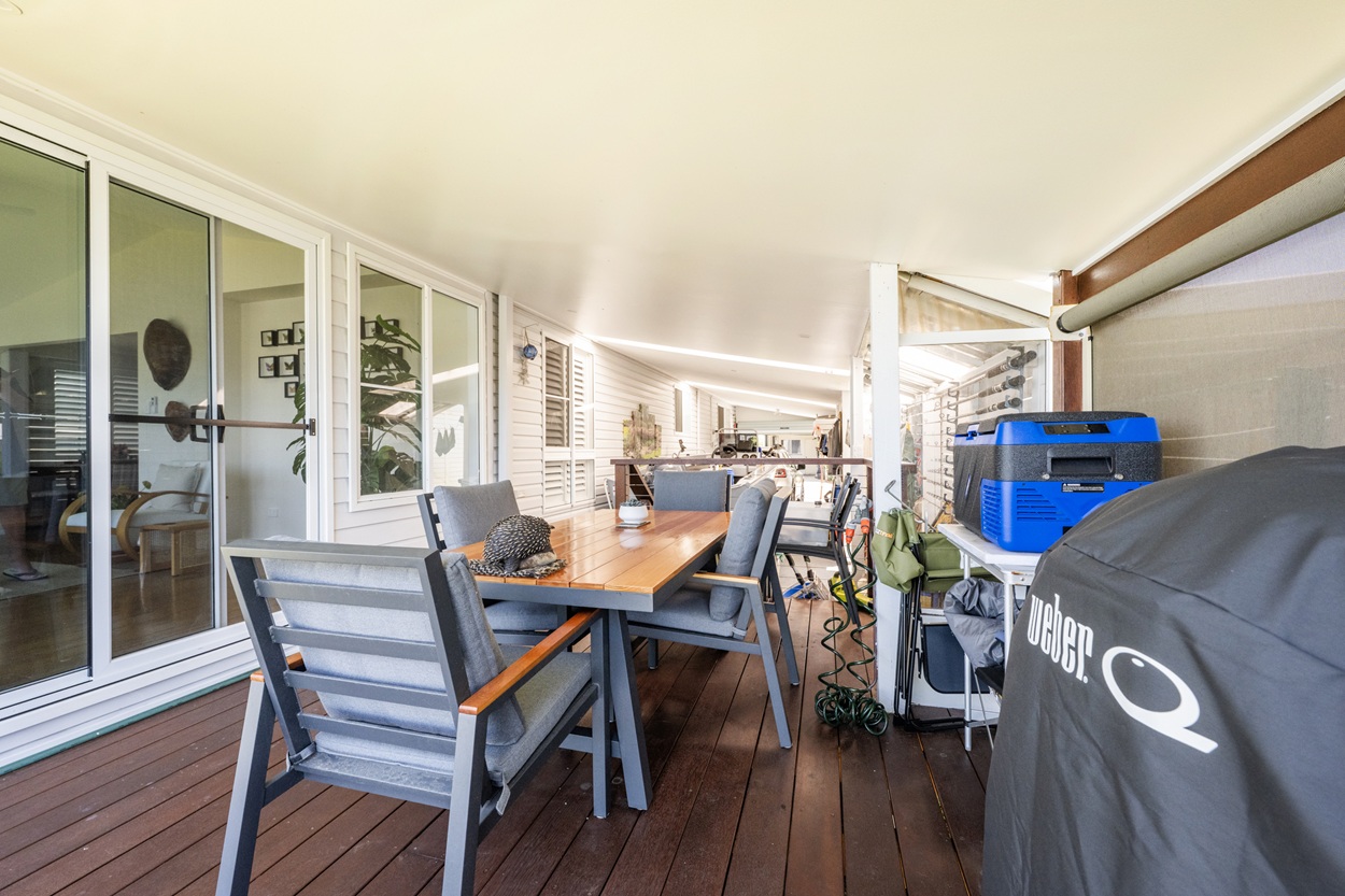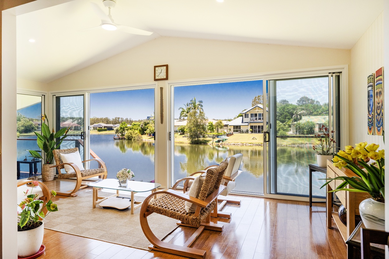 Recently transformed to maximise breathtaking 180-degree water views, this beautifully renovated home delivers modern comfort with an enviable resort-style lifestyle. The sleek kitchen features a central island, new appliances and generous storage with soft-close cabinetry, flowing into open-plan living, dining and lounge spaces filled with natural light. A full-width sunroom connects seamlessly to the covered alfresco area and down to the water’s edge, perfect for entertaining.