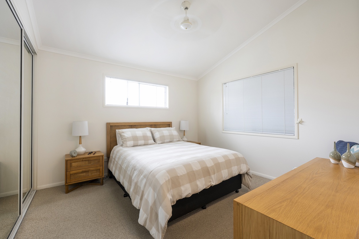 The contemporary kitchen includes quality appliances, ample storage and elegant finishes, flowing seamlessly to the living zones. Both bedrooms offer built-in robes and a ceiling fan in the master bedroom, while the mobility-friendly bathroom is designed for space and ease. Finished with indoor-operated outdoor blinds and coordinated soft furnishings, this charming home is ready to welcome its new owners.
