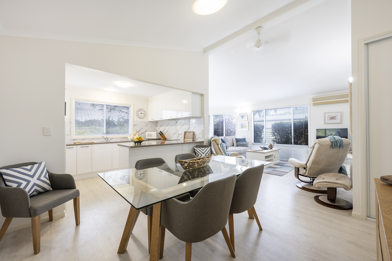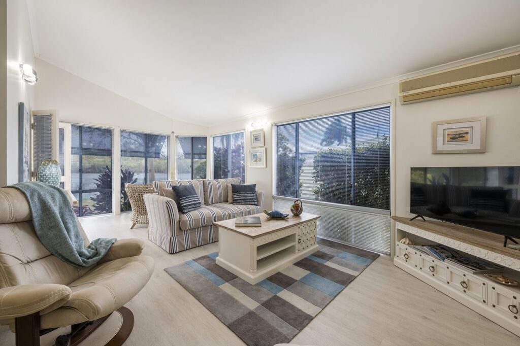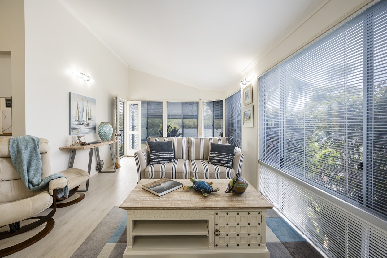 This is a rare opportunity to secure a beautifully renovated waterfront home in the highly sought-after Palm Lake Resort, Yamba. Designed for relaxed living, it features open-plan living and dining, a versatile study, a generous craft room and reverse-cycle air conditioning for year-round comfort.