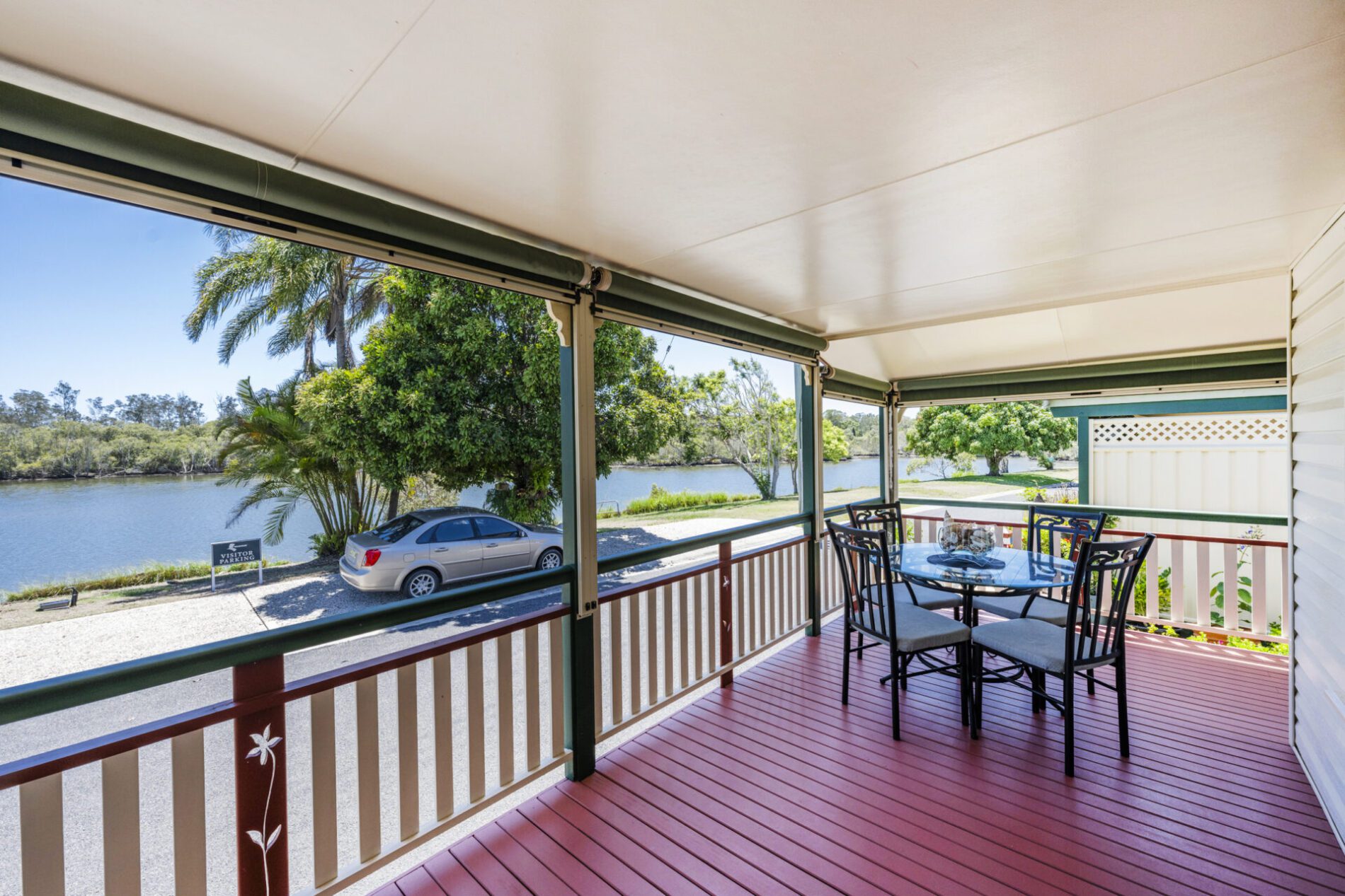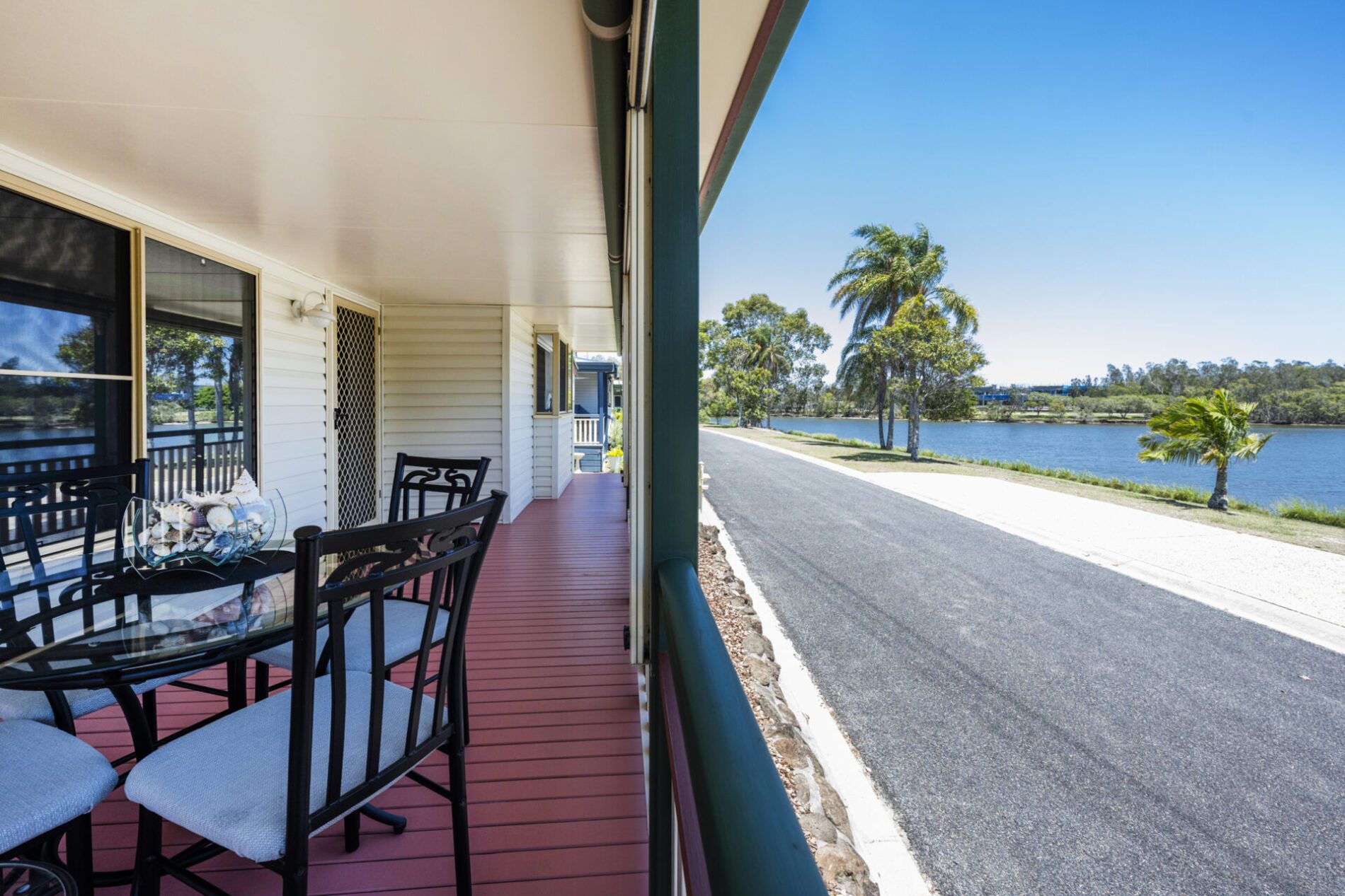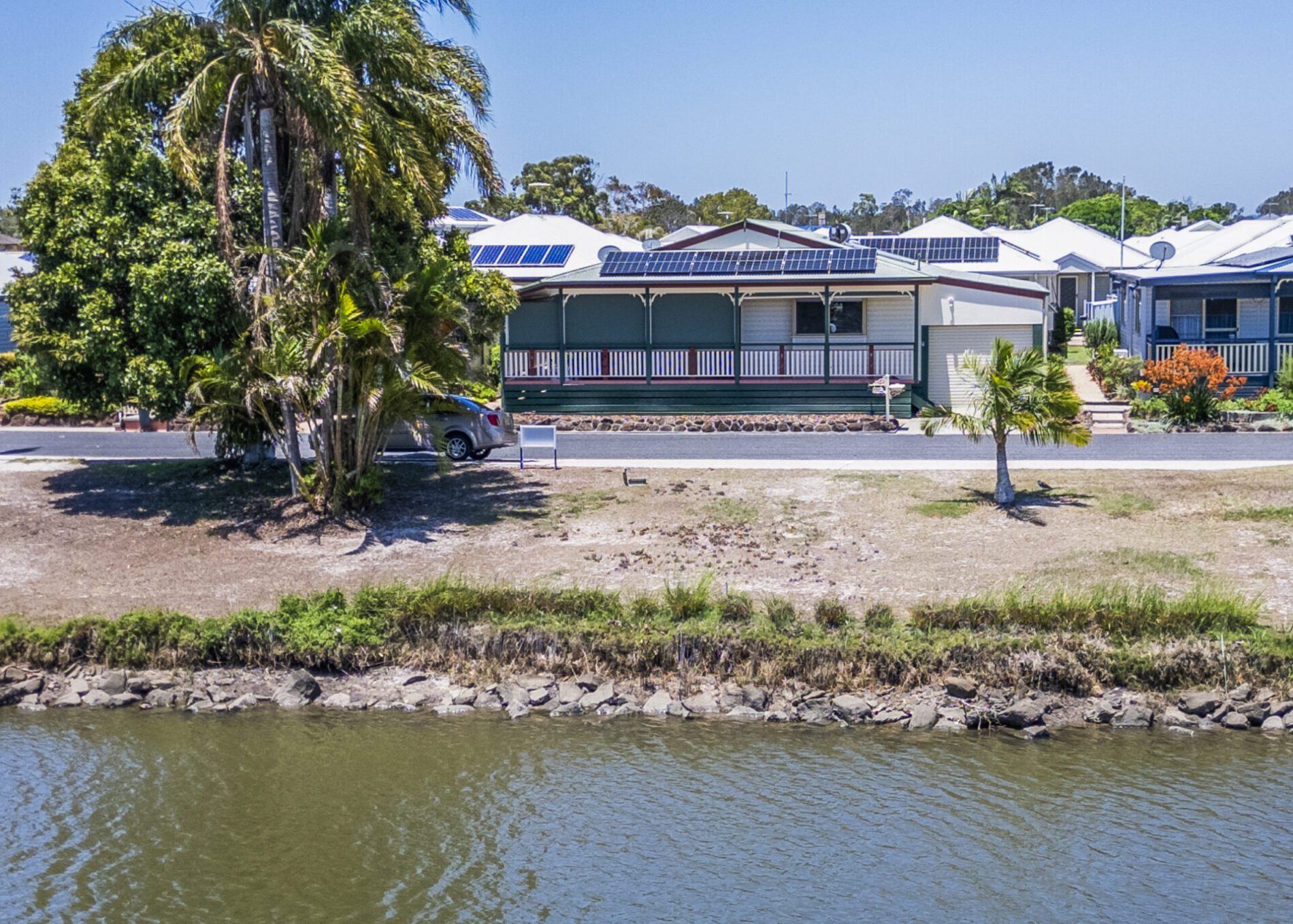 This immaculately presented two-bedroom, two-bathroom home offers rare full water views in Palm Lake Yamba. Recently renovated for comfort and ease of living, it features new floor coverings, blinds, fans, a split-system air conditioner and exterior roll-up blinds. The front veranda is ideal for entertaining or relaxing as dolphins pass by and Yamba’s sunsets unfold.