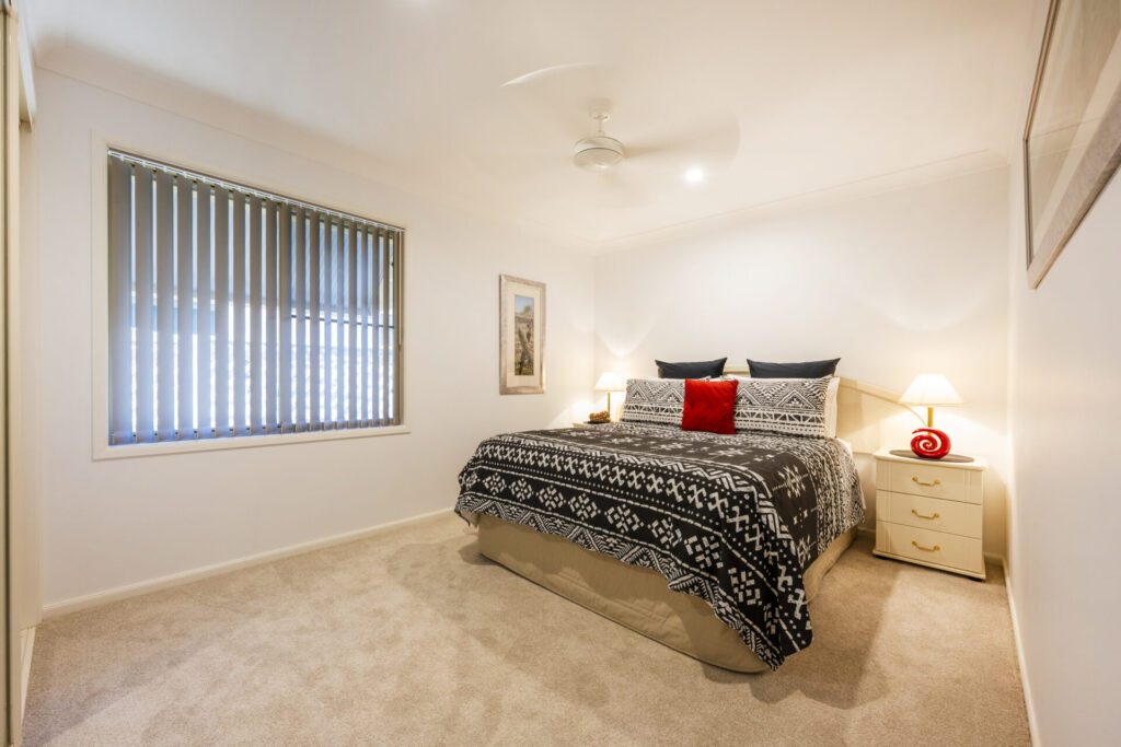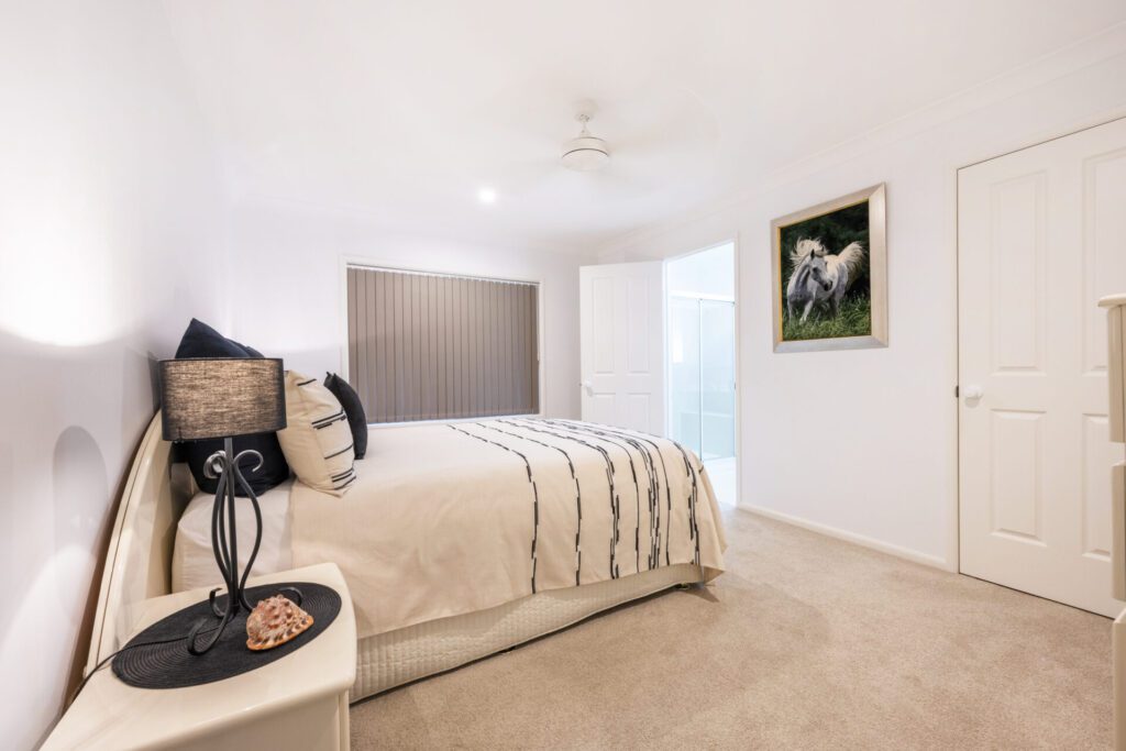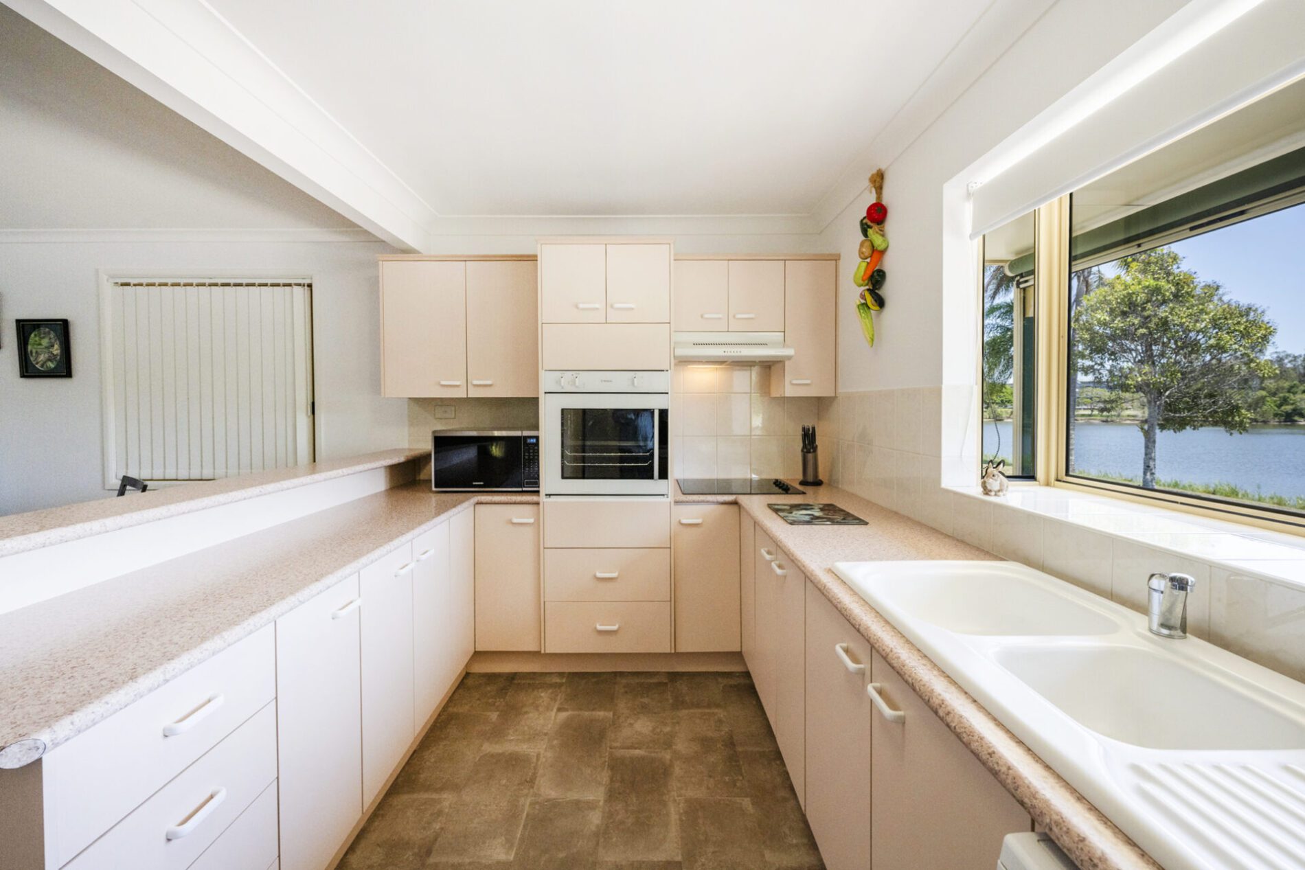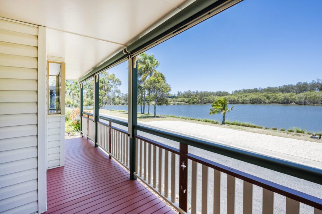 This immaculately presented two-bedroom, two-bathroom home offers rare full water views in Palm Lake Yamba. Recently renovated for comfort and ease of living, it features new floor coverings, blinds, fans, a split-system air conditioner and exterior roll-up blinds. The front veranda is ideal for entertaining or relaxing as dolphins pass by and Yamba’s sunsets unfold.